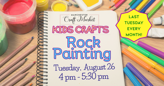 Each person will have a small terracotta pot to decorate and paint as they please. We have many supplies from paints to glue and glitter and more. Join us at the Manchester Craft Market January 7th at 5:30 pm.