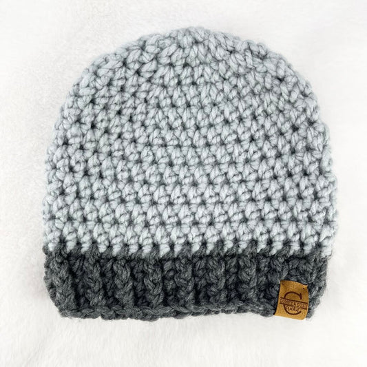 Comfy & Cozy CrochetBeanie Hat (Child) - Steel with Charcoal Brim