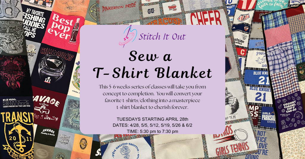 Turn your favorite t-shirts into a cozy, meaningful keepsake! In this 5-6 week hands-on class, you'll convert your favorite t-shirts or clothing into a custom t-shirt blanket that tells your story. Each week, we'll focus on one step of the process. Starting with planing & ending with finishing your blanket. By the end of the course, you'll have the skills & confidence to complete a beautiful t-shirt blanket. What to Bring: