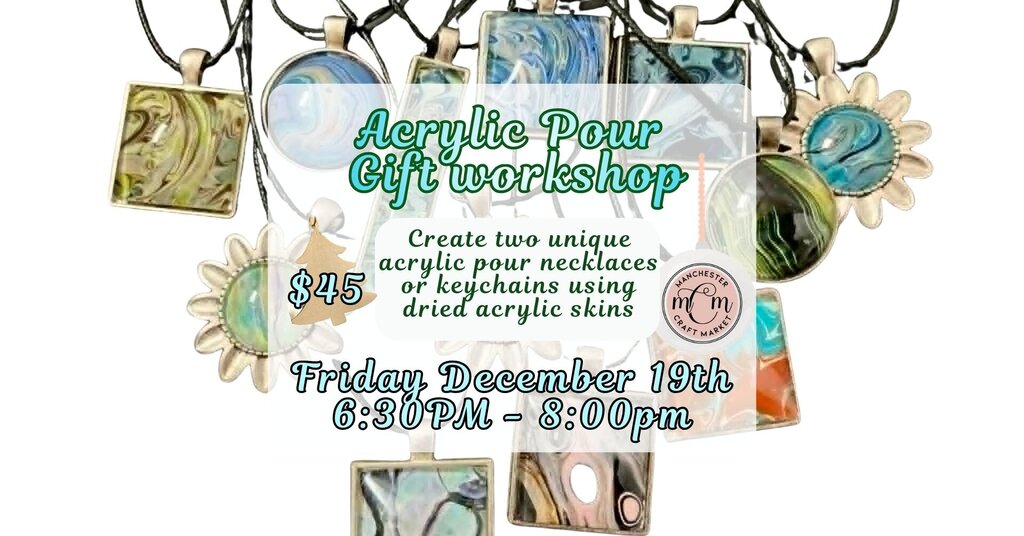 Acrylic Pour Gift Workshop Friday, December 19th at 6:30 PM Manchester Craft Market If you’re looking to create a unique...