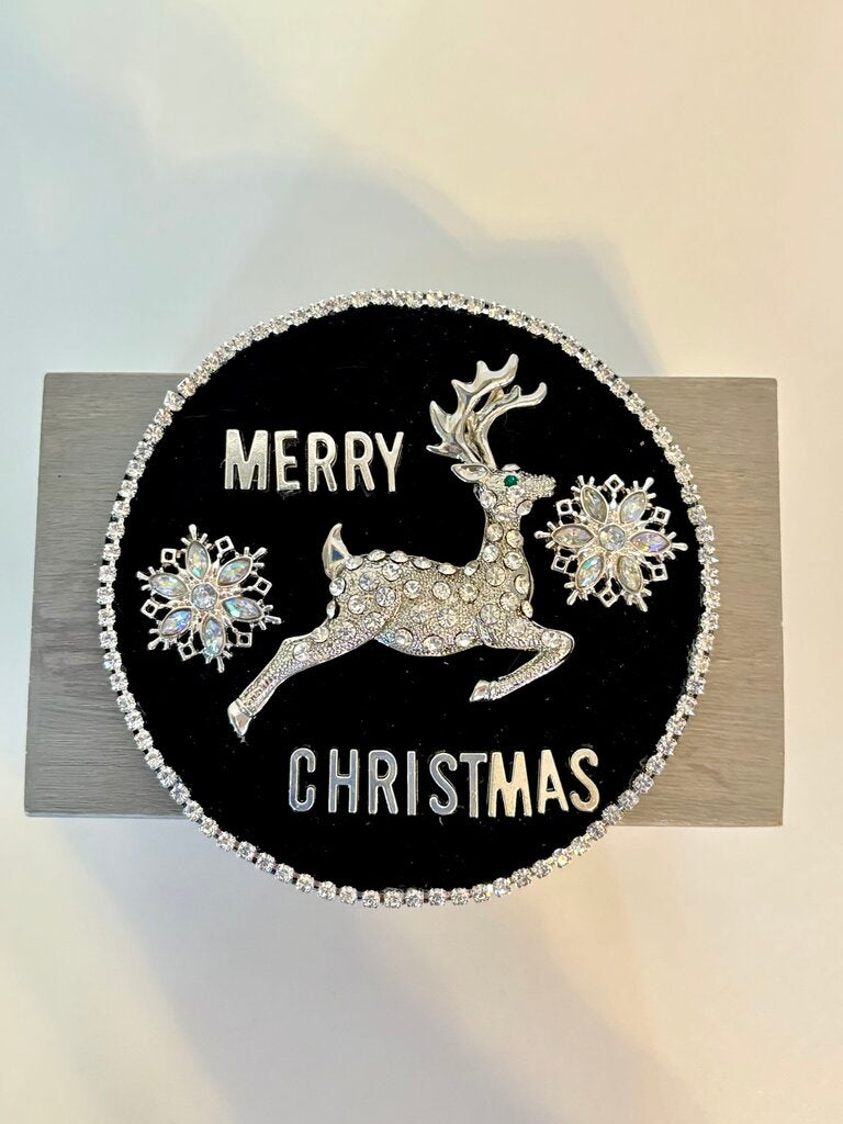 4 inch MAGNET VTG SILVER REINDEER w/ MERRY CHRISTMAS