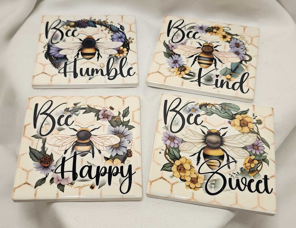 4 pack coaster set- Bee kind. Bee humble. Bee happy. Bee sweet.