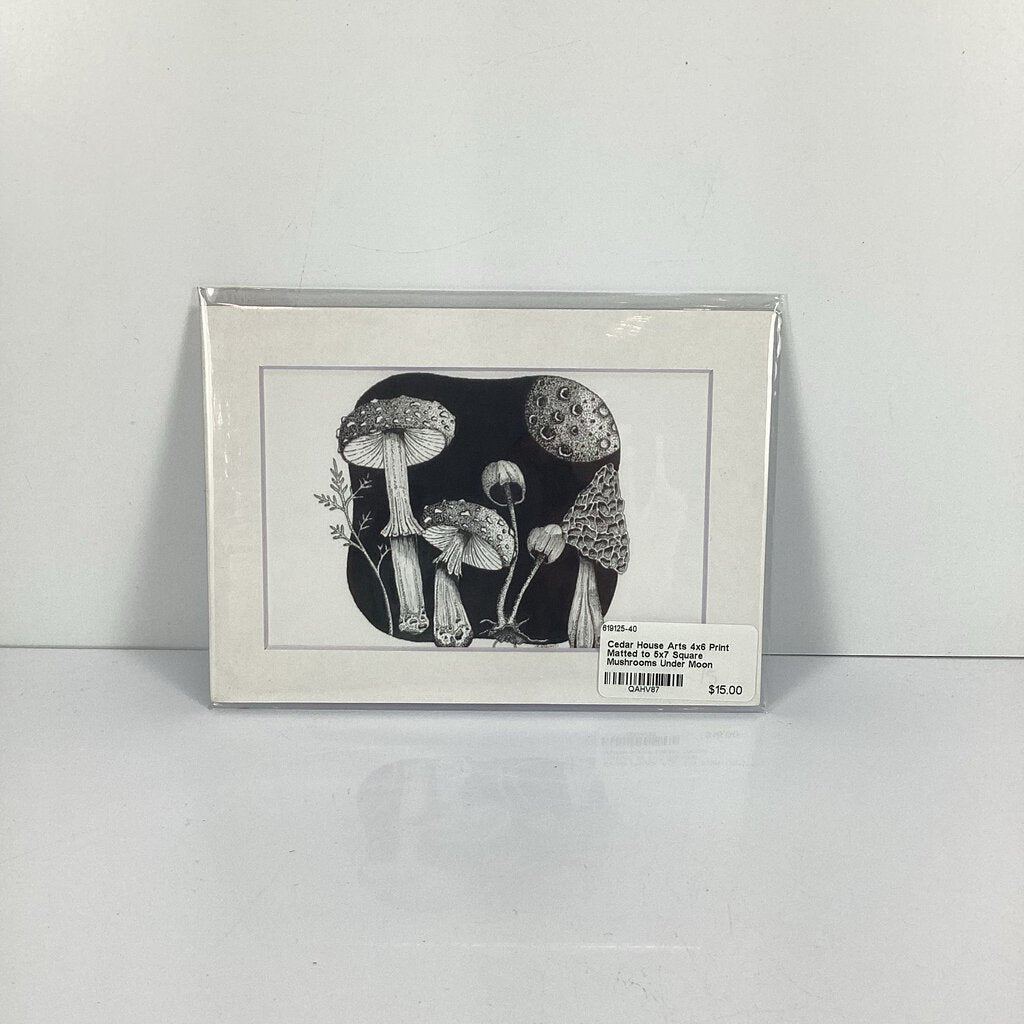 4x6 Print Matted to 5x7 Square Mushrooms Under Moon