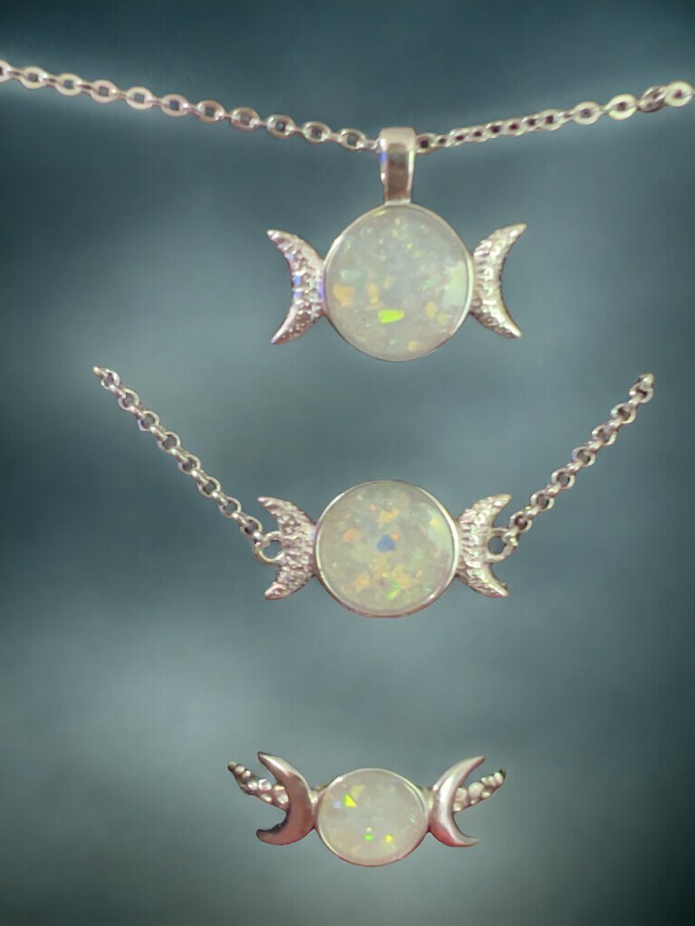 925 Sterling Silver Moon Necklace, Bracelet and Ring Set Kristi's Keepsakes Share Deel Messenger Email Low Stock 925 Sterling Silver Moon Necklace, Bracelet and Ring Set Kristi's Keepsakes Share Deel Messenger Email Product form This item is only available for in-store pickup. EARRINGS - Jewelry Sets Free pickup in store! Free pickup in store! Size 3 piece Adjustable ColorWhite Opal Shimmer Condition New $95.00 Quantity Add to cart