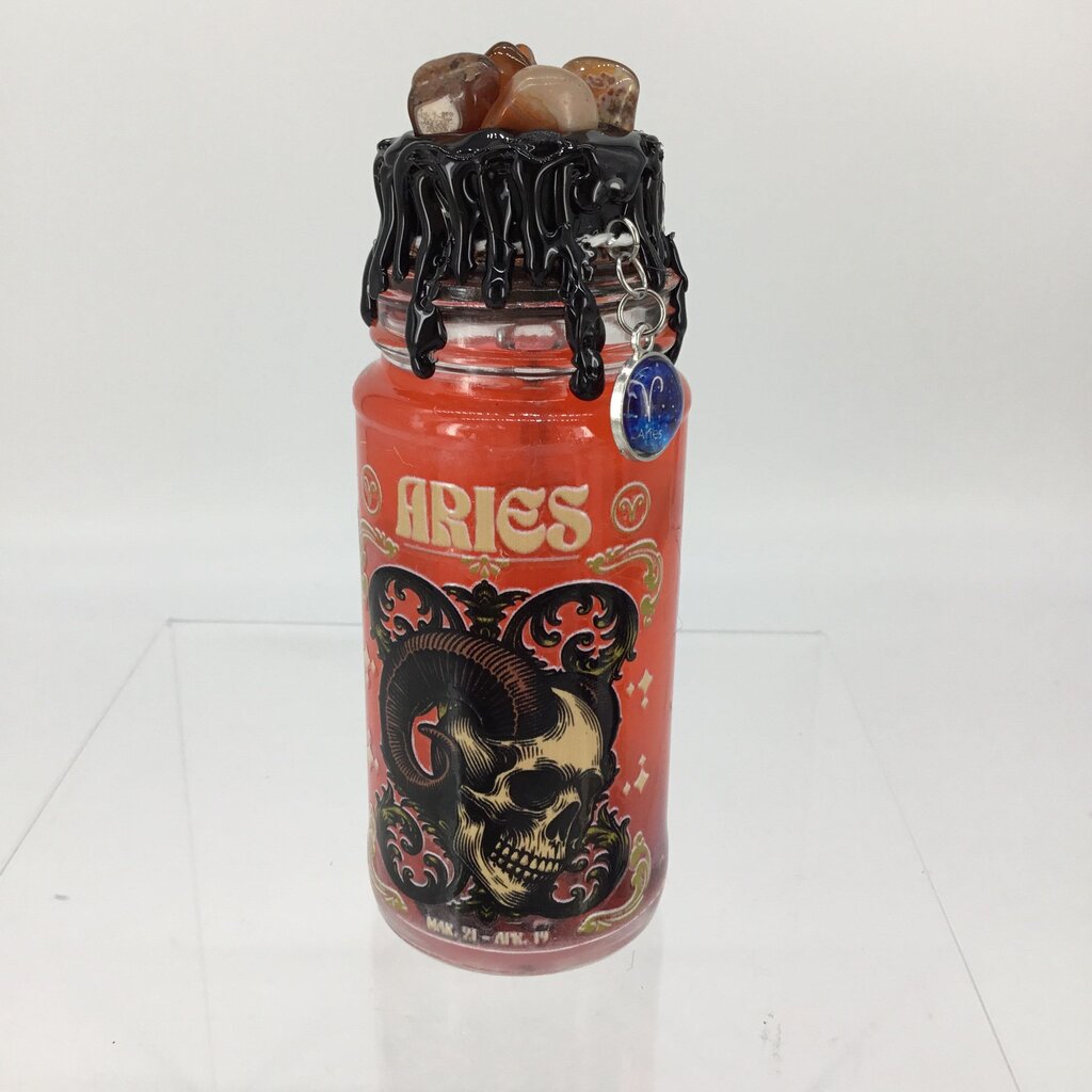 Decorative One-of-a-kind Glass Potion Bottle, Color Changing when shaken. Contains Carnelian and a Hanging Skeleton. Bottle is sealed. Do not...