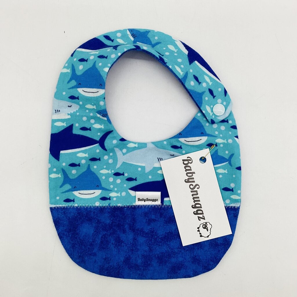 Baby Bib BabySnuggz Share Deel Messenger Email Low Stock Baby Bib BabySnuggz Share Deel Messenger Email Product form This item is only available for in-store pickup. BABY GEAR - Bibs Soft Flannel Bib with Snap Closure Free pickup in store! Free pickup in store! Size Approx 10" Long x 7 1/2" Wide ColorSharks on Blue Condition New $12.00 Quantity Add to cart