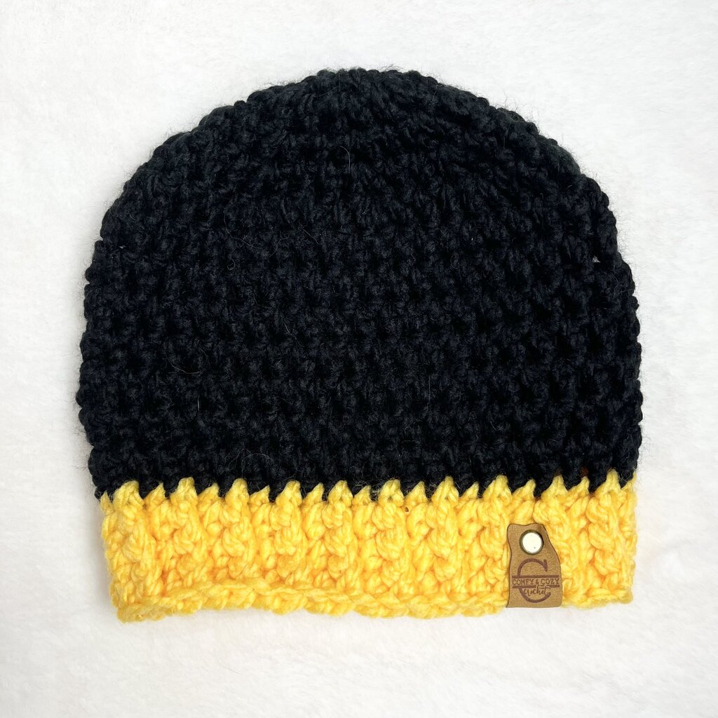 Crochet winter hat. Machine wash gentle. Lay flat or tumble dry low heat.