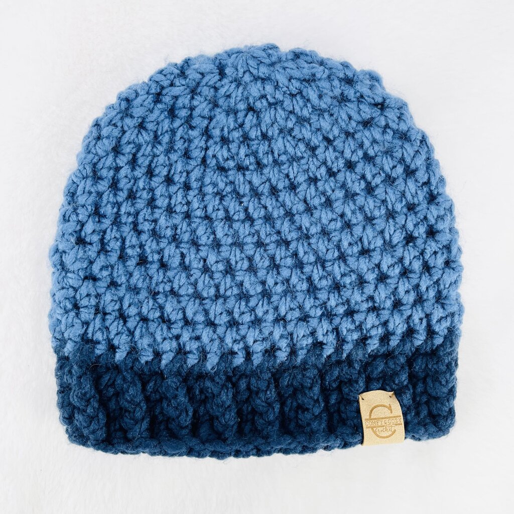 Crochet winter beanie hat. Made with acrylic yarn. Machine wash gentle. Lay flat or tumble dry low heat.
