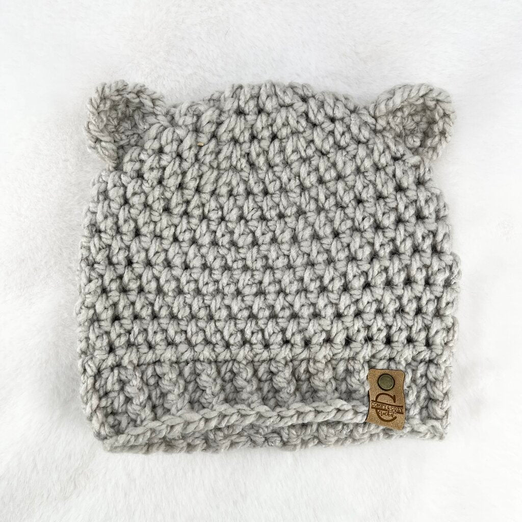 Crochet winter beanie hat. Made with acrylic yarn. Machine wash gentle. Lay flat or tumble dry low heat.