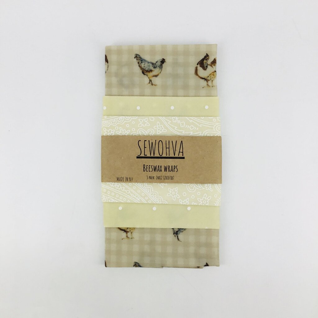 Beeswax Wraps 3 Pack, Neutral Chickens