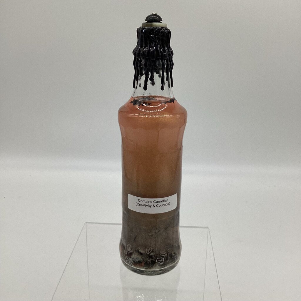 One-of-a-Kind Decorative Potion Bottle. Contains Carnelian. Color Changing Action. Shake Well. Potion bottle is sealed. DO NOT Consume.