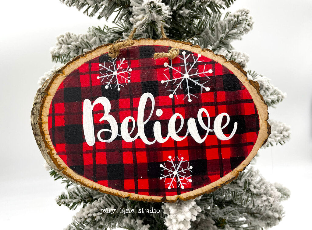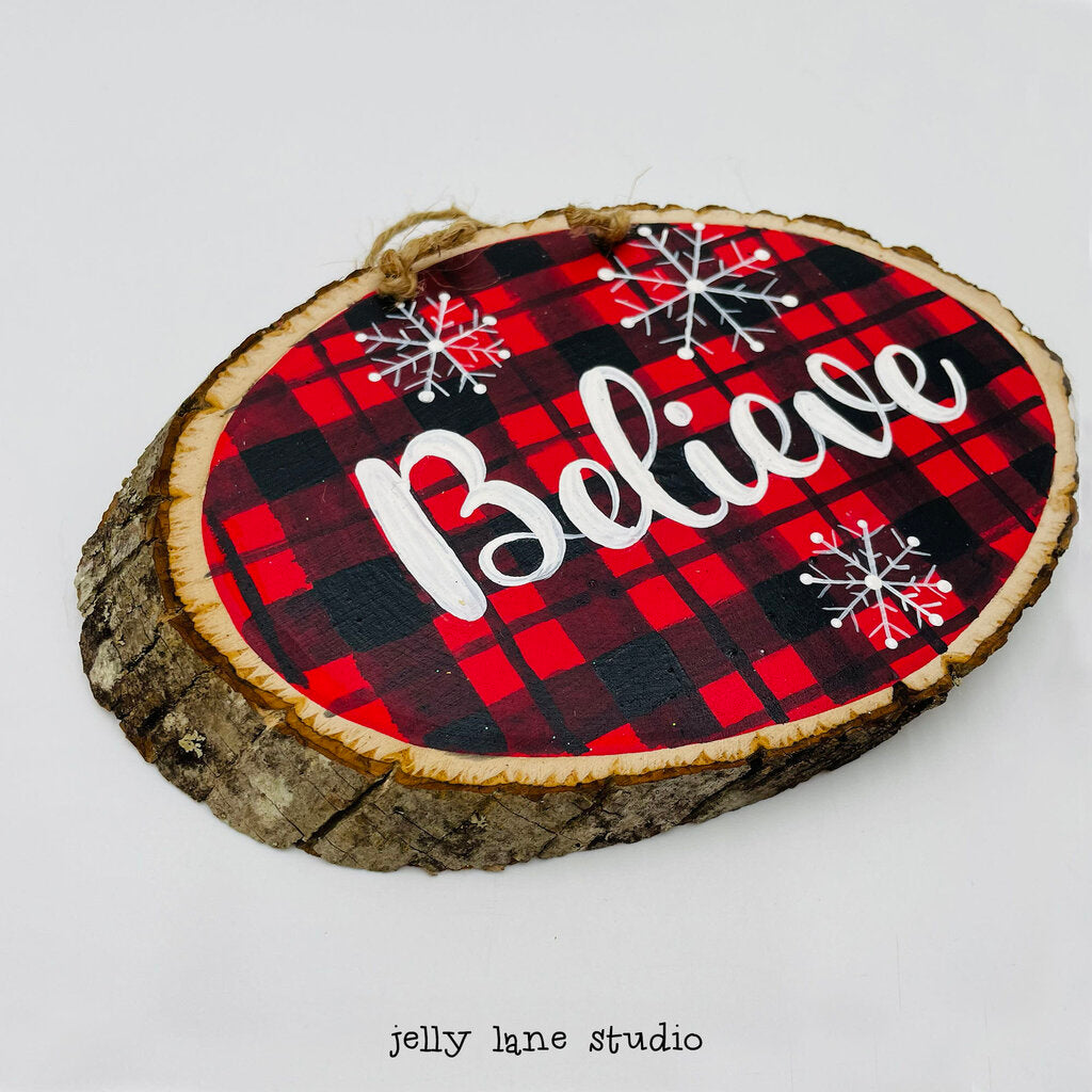 BELIEVE Jelly Lane Studio Share Deel Messenger Email BELIEVE Jelly Lane Studio Share Deel Messenger Email Product form This item is only available for in-store pickup. ORNAMENTS & HANGING DECOR handpainted on a rustic wood slice Free pickup in store! Free pickup in store! Size 5X7 Colorred/black Condition New $22.00 Quantity Add to cart