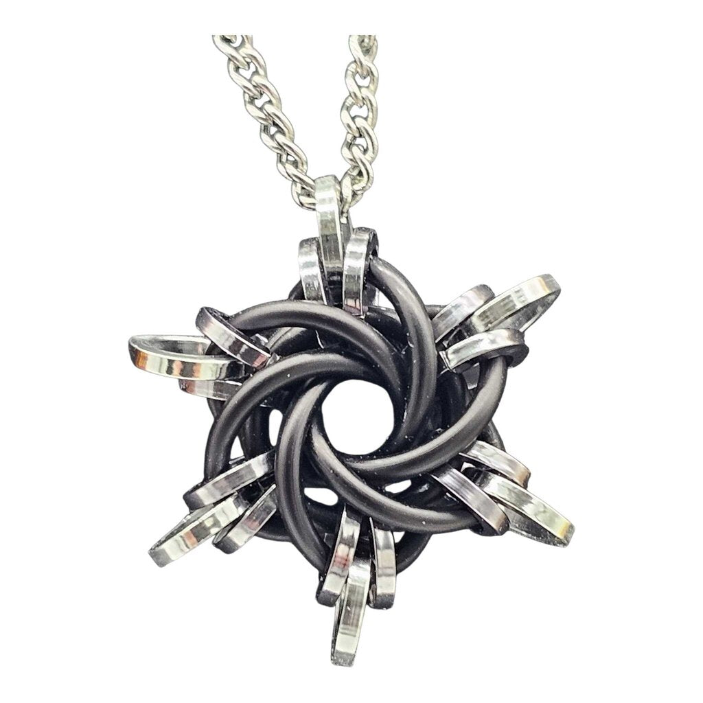 Black, Silver Starry Night Pendant, 18 inch stainless steel chain