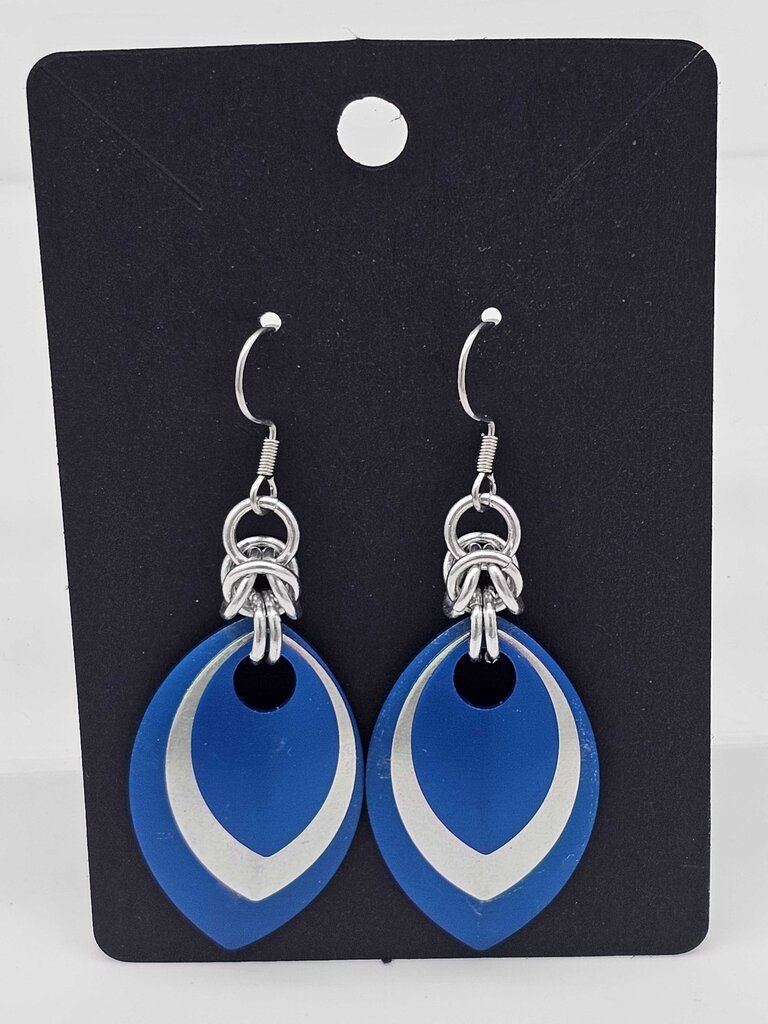 Blue, Silver, and Blue Scale Earrings, surgical steel ear wires. Looking for different colors? Please email us at graycatmanordesigns@gmail.com and...