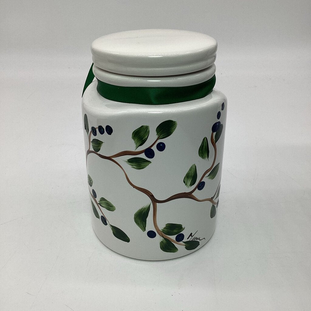 HandPainted ceramic small canister with blueberries. Include cover.