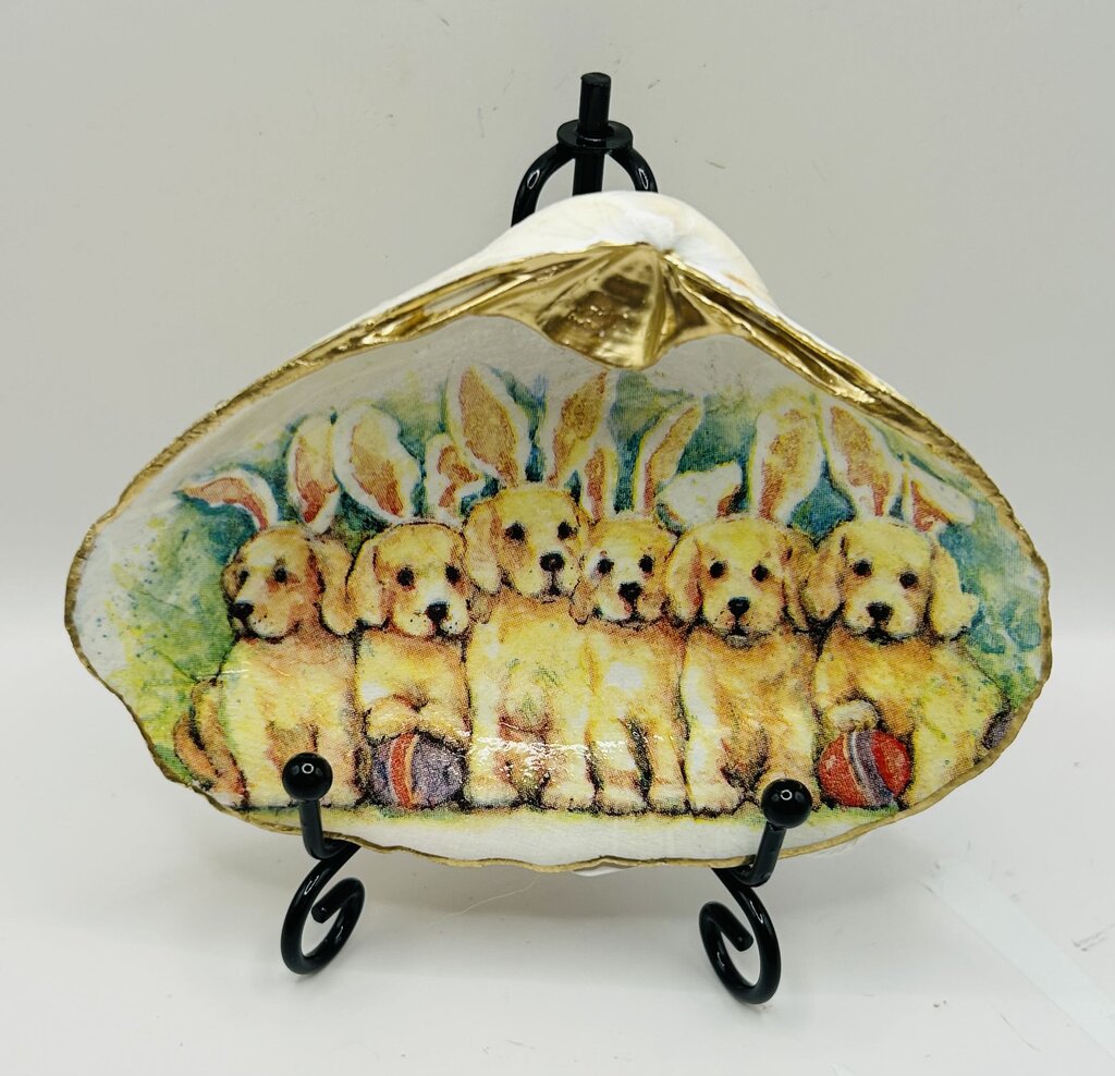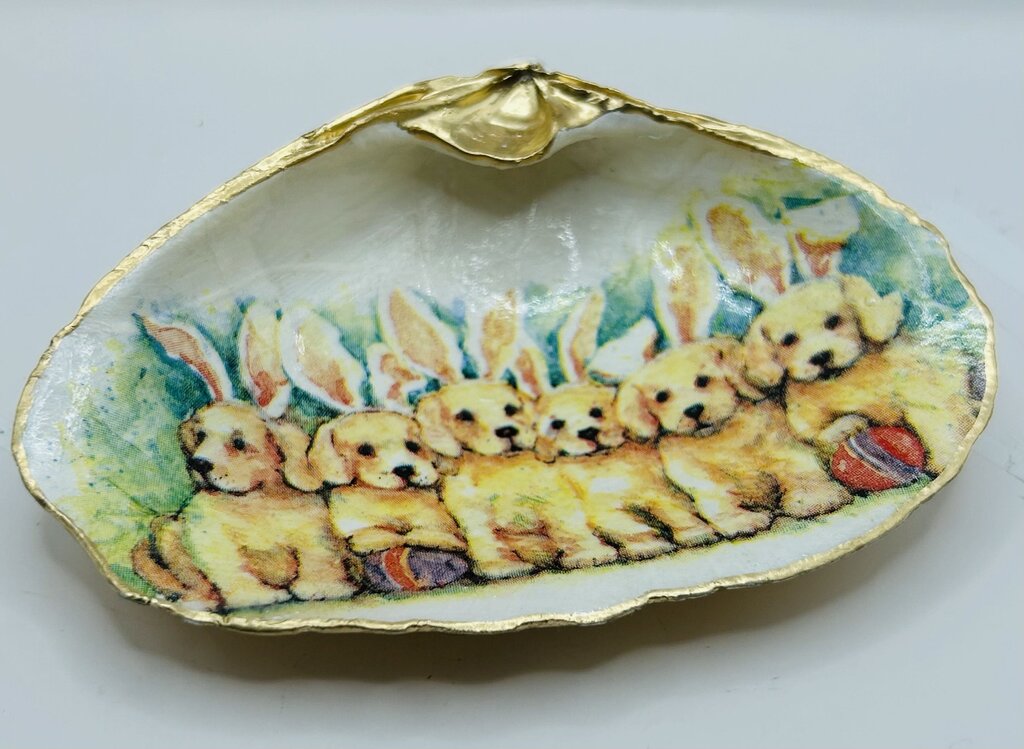 Hand collected and decoupaged Clam Shell from Jenness Beach, Rye, NH)