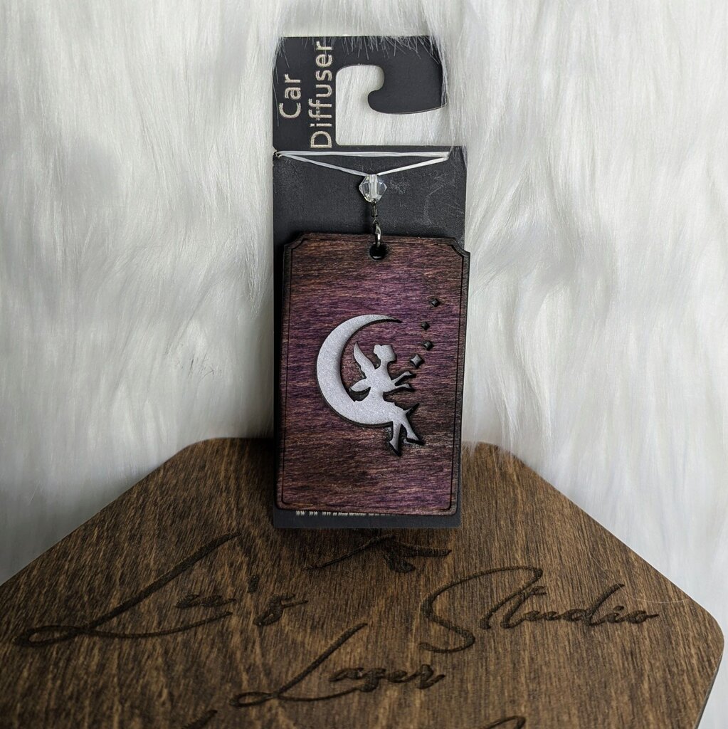 Shou Sugi Ban (torched), double-sided laser-cut wood, eco-friendly, and stylish handcrafted car diffusers. With Crystal beads Best alternative to disposable air fresheners, offering a natural and customizable fragrance experience. It's the perfect way to keep your vehicle smelling fresh while adding a touch of personality to your rearview mirror. Made from high-quality laser-cut wood, each diffuser features a unique cutout design. The wooden base not only holds a felt pad for essential oil drops, and absorbs the oil, allowing for a longer-lasting and more consistent scent. Just add a few drops of your favorite essential oil to the felt pad and enjoy a refreshing aroma every time you drive. Includes one small Lavender Essential Oil bottle and one pad.