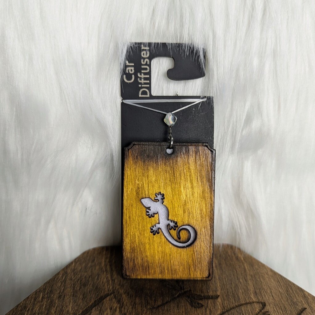 Shou Sugi Ban (torched), double-sided laser-cut wood, eco-friendly, and stylish handcrafted car diffusers. Best alternative to disposable air fresheners, offering a natural and customizable fragrance experience. It's the perfect way to keep your vehicle smelling fresh while adding a touch of personality to your rearview mirror. Made from high-quality laser-cut wood, each diffuser features a unique cutout design. The wooden base not only holds a felt pad for essential oil drops, and absorbs the oil, allowing for a longer-lasting and more consistent scent. Just add a few drops of your favorite essential oil to the felt pad and enjoy a refreshing aroma every time you drive. Includes one small Lavender Essential Oil bottle and one pad.