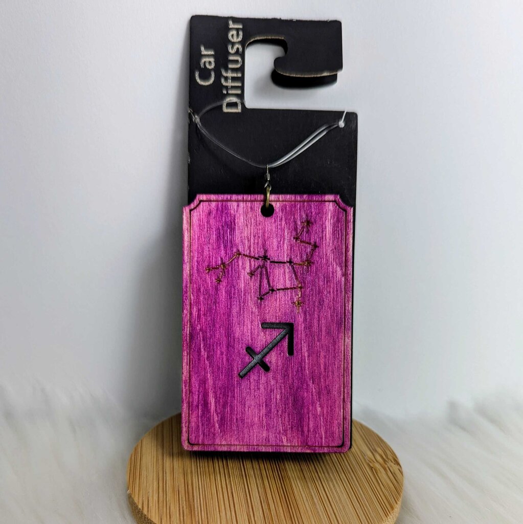 Double-sided laser-cut wood, eco-friendly, and stylish handcrafted car diffusers. Best alternative to disposable air fresheners, offering a natural and customizable fragrance experience. It's the perfect way to keep your vehicle smelling fresh while adding a touch of personality to your rearview mirror. Made from high-quality laser-cut wood, each diffuser features a unique cutout design. The wooden base not only holds a felt pad for essential oil drops, and absorbs the oil, allowing for a longer-lasting and more consistent scent. Just add a few drops of your favorite essential oil to the felt pad and enjoy a refreshing aroma every time you drive. Includes one small Lavender Essential Oil bottle and one pad.