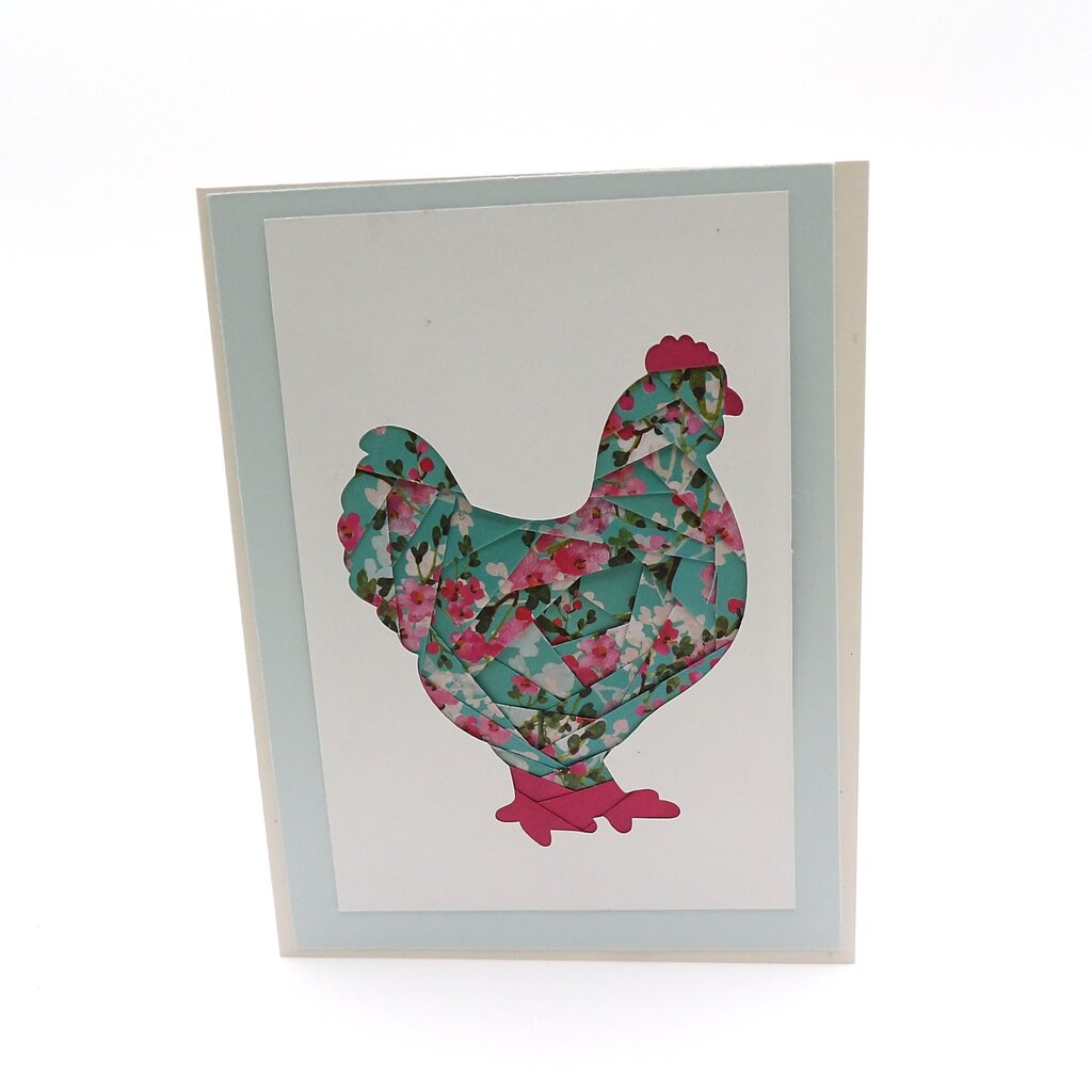 Seafoam accent with teal and pink floral origami papers. Blank inside for your personal message. Card base is made with FSC-certified, 100% recycled PCW,100lb cover cardstock. Includes a coordinating A2 envelope and a commercially compostable protective sleeve.