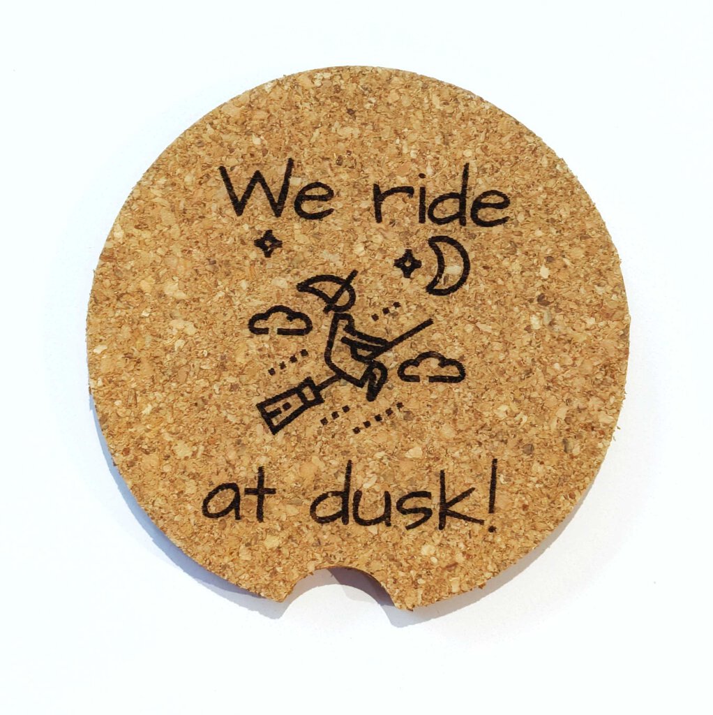 Cork Car Coaster CCC - We Ride at Dusk (Witch on Broom)