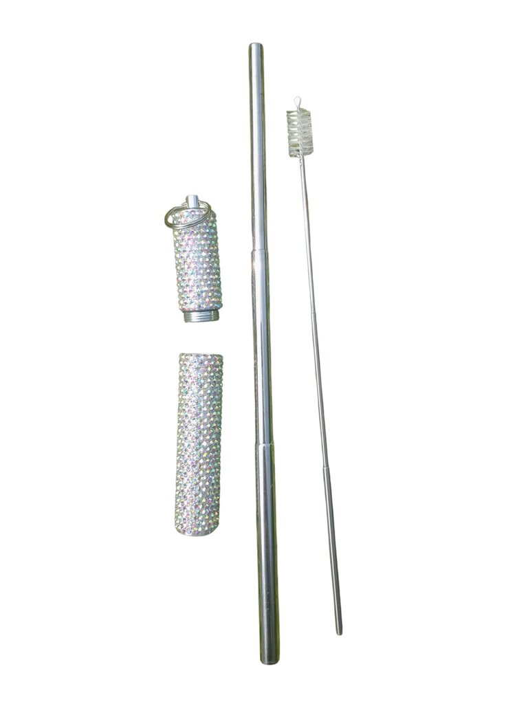 Crystal AB Rhinestone Travel Straw