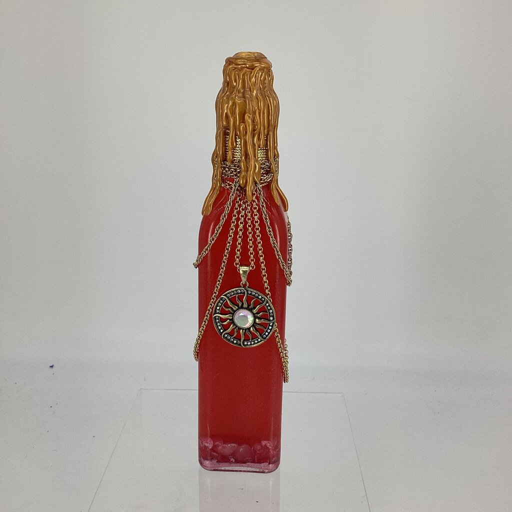 Decorative One-of-a-kind Glass Potion bottle. Color Changing. Contains Rose Quartz.