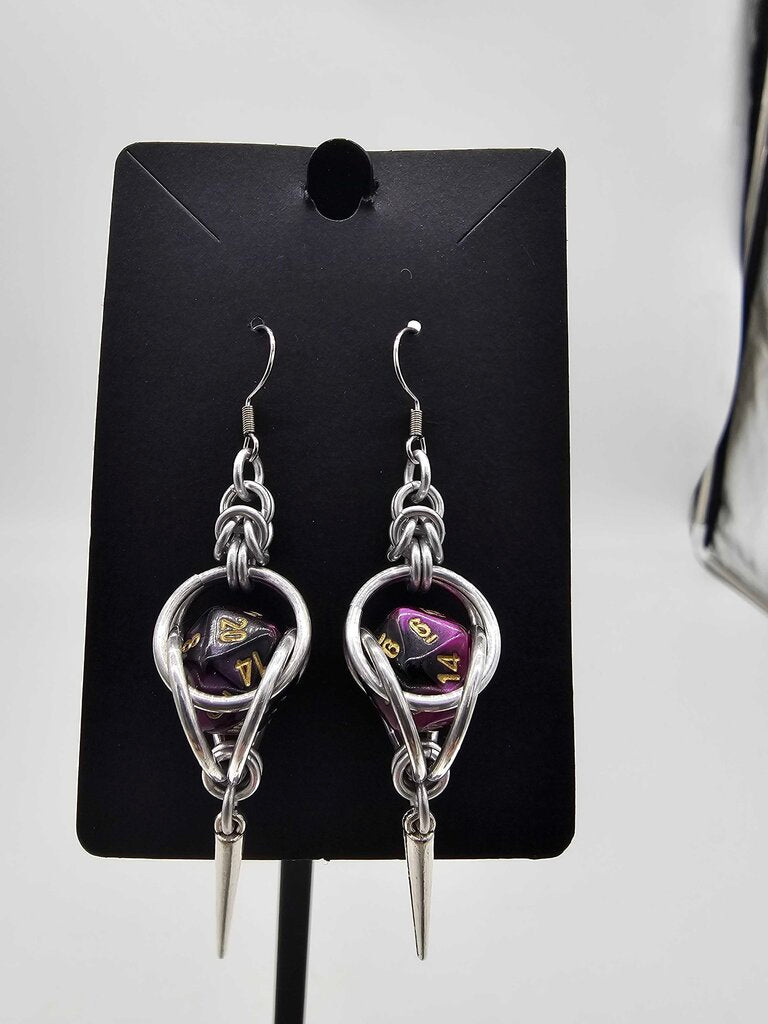 0 gauge earrings with pink/black mini D20 earrings with spike