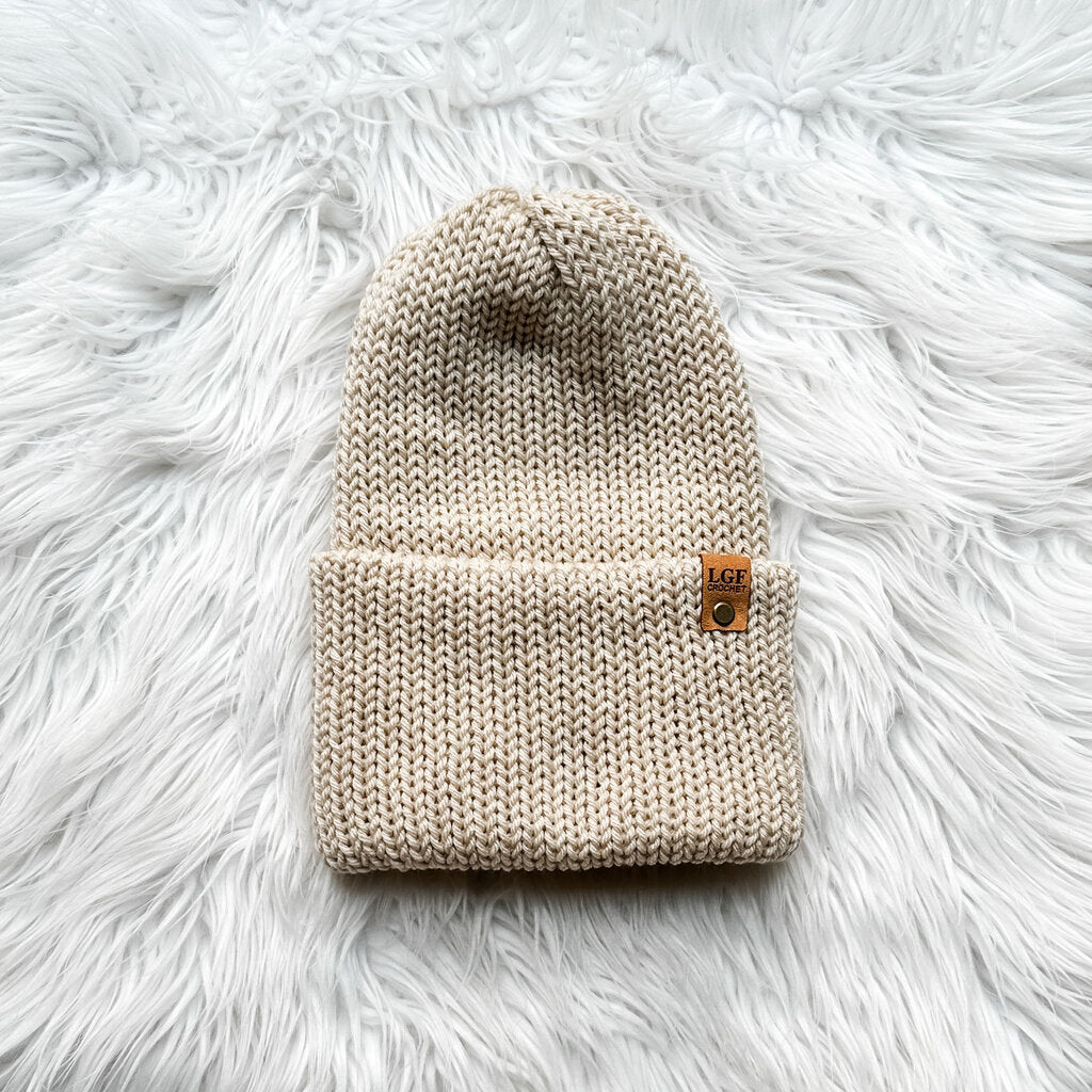 Double Brim Knit Beanie in Sand