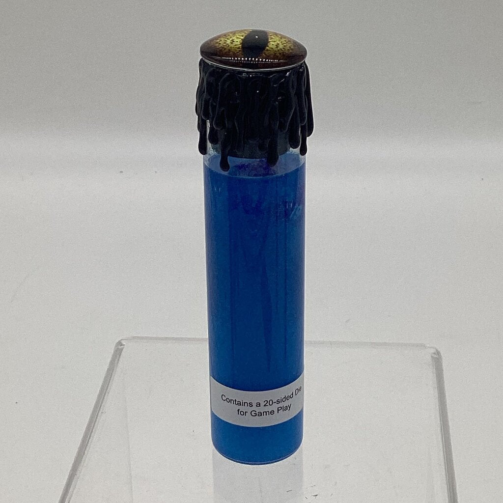 Floating Die Glass Roller, Swirling Action, Contains 20-sided die for Game playing. Roller is sealed. Do Not consume.