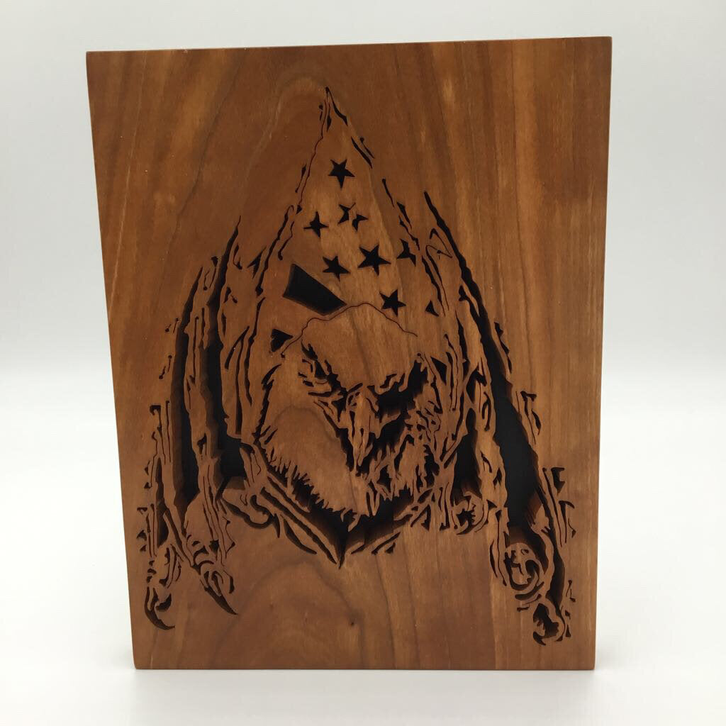 EAGLE W SHREDDED FLAG PLAQUE. Personalization is available for an extra fee. Allow 2 weeks for delivery if personalized.