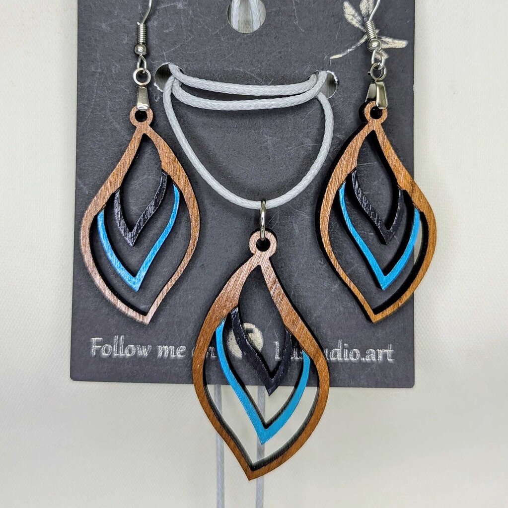 Earring Necklace Set Cherry wood with black and turquoise detail