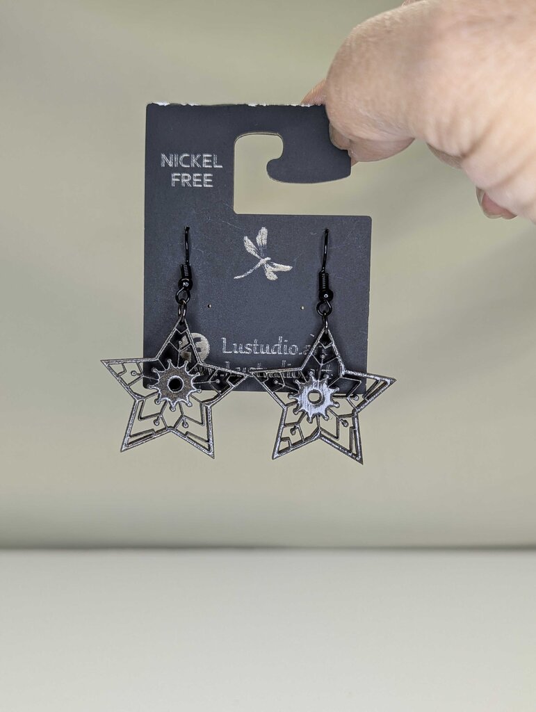 Earrings - Black star with snowflake Lu's Studio Laser Arts and Crafts Share Deel Messenger Email Low Stock Earrings - Black star with snowflake Lu's Studio Laser Arts and Crafts Share Deel Messenger Email Product form This item is only available for in-store pickup. EARRINGS - Earrings Laser cut hand painted Free pickup in store! Free pickup in store! Colorblack Condition New $20.00 Quantity Add to cart