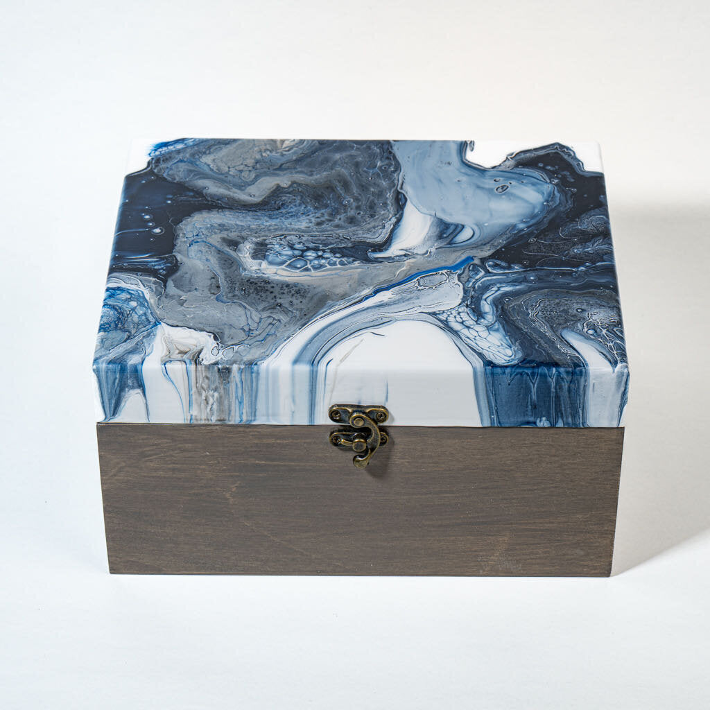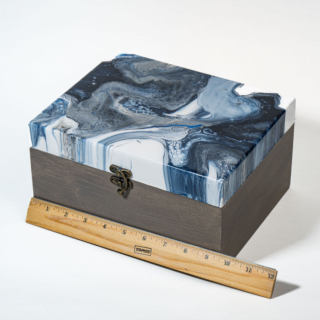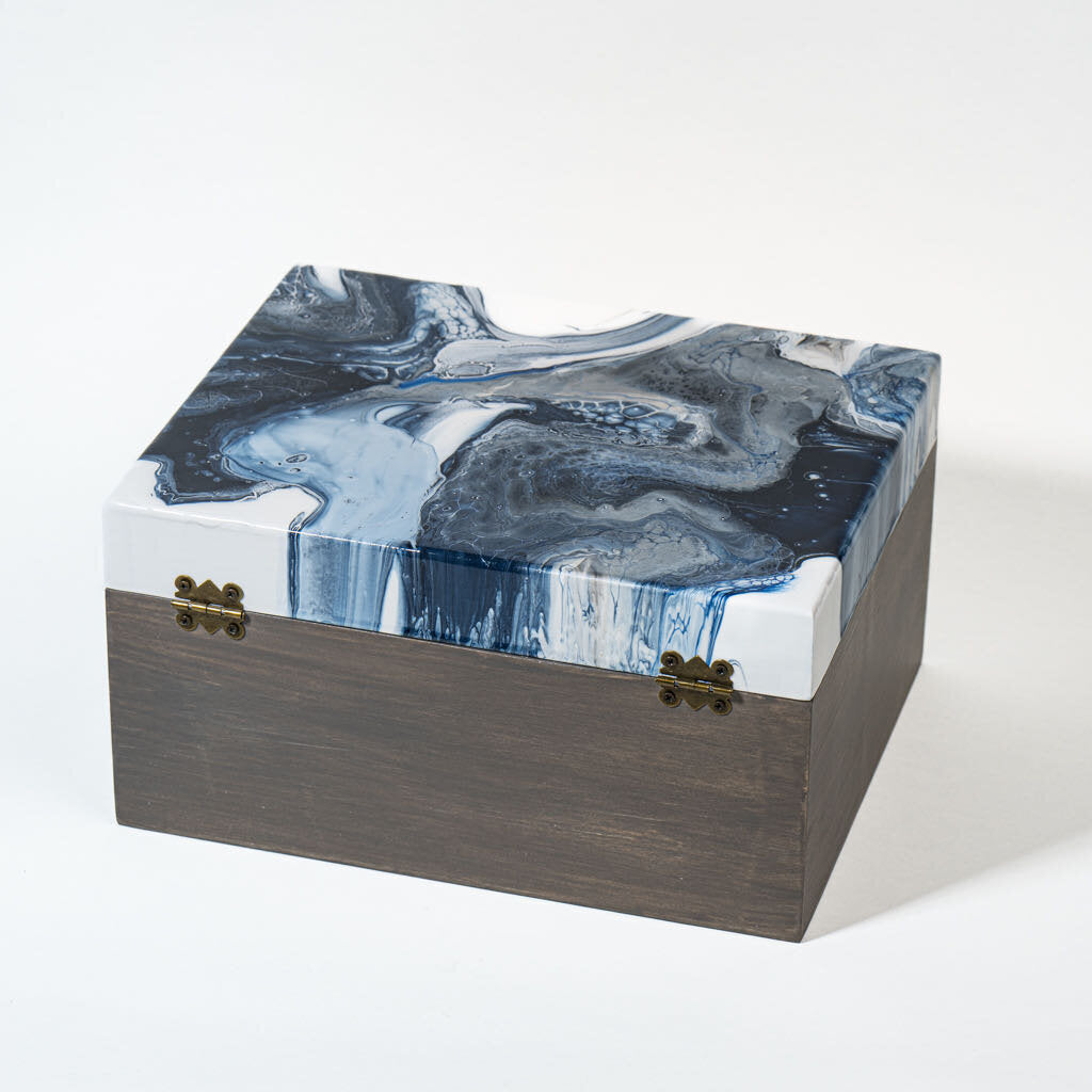 A true heirloom-scale piece. Spacious and commanding, this chest blends fine wood finishing with an original resin-protected painting that feels almost sculptural in depth. Each one is meticulously handcrafted over multiple days - from staining and sealing the wood, painting, resin-coating. Designed to hold treasured objects - and become one itself.