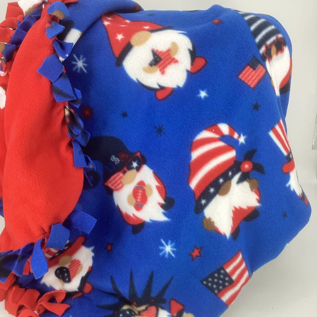 Fleece blanket R,W,B gnome w/ red
