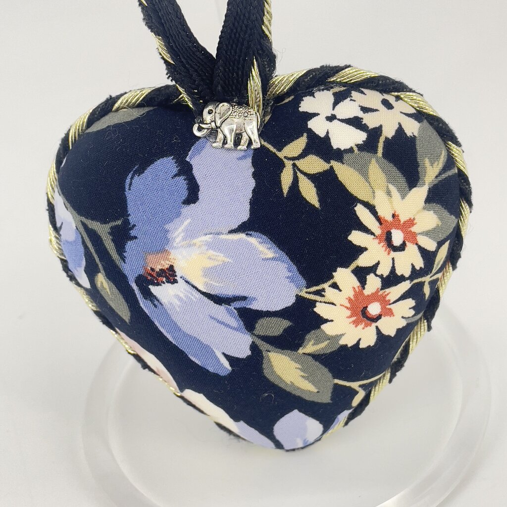 Black and blue Floral heart tree ornament with elephant charm