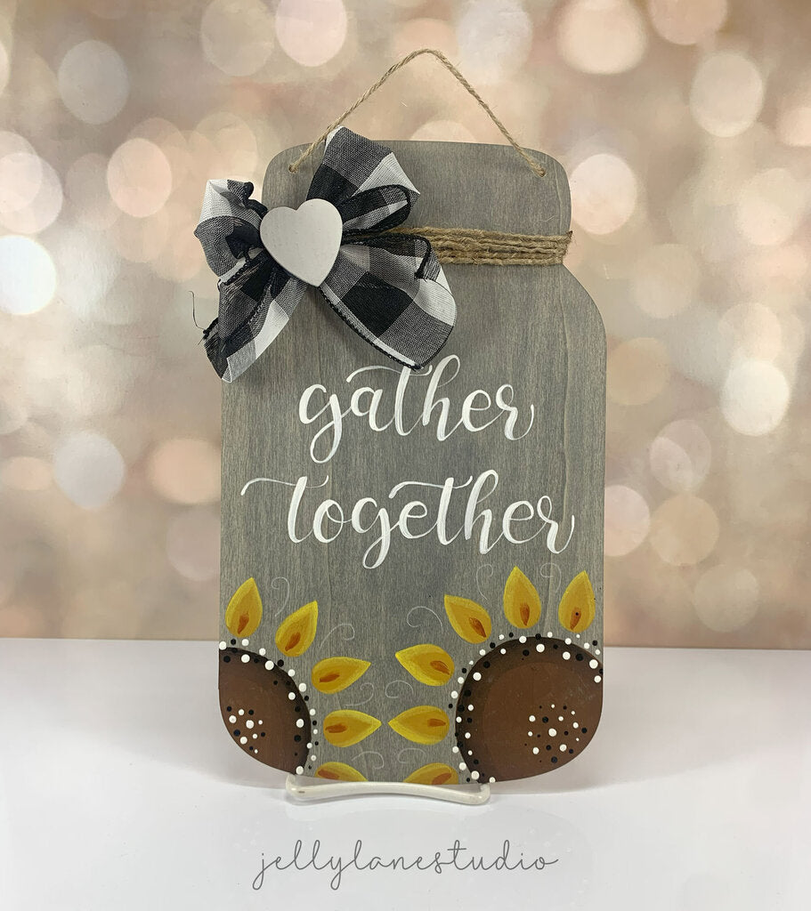 hand painted on a wood mason jar and sealed with a spray finish Read more