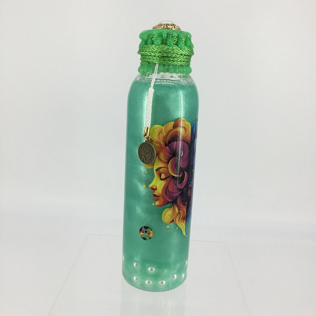 Decorative One-of-a-Kind Potion Bottle, Color Changing, Contains Clear Quartz. Mandala Coaster included.