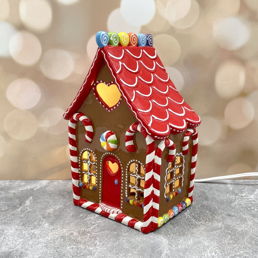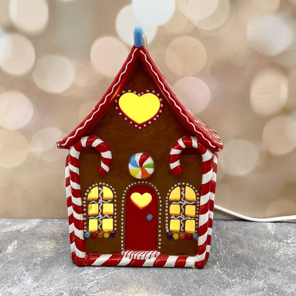 Hand Painted Kiln Fired Ceramics. Measurements: 8.75"H x 6"W x 4.25"D Comes with a clip in light kit that plugs...