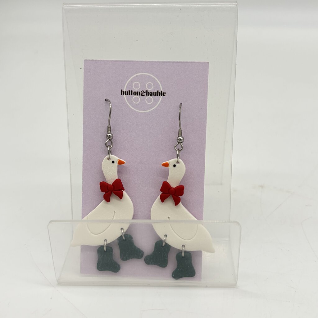 Goose Dangle Earrings Button and Bauble Share Deel Messenger Email Goose Dangle Earrings Button and Bauble Share Deel Messenger Email Product form This item is only available for in-store pickup. EARRINGS Free pickup in store! Free pickup in store! ColorRed Bow Condition New $15.00 Quantity Add to cart