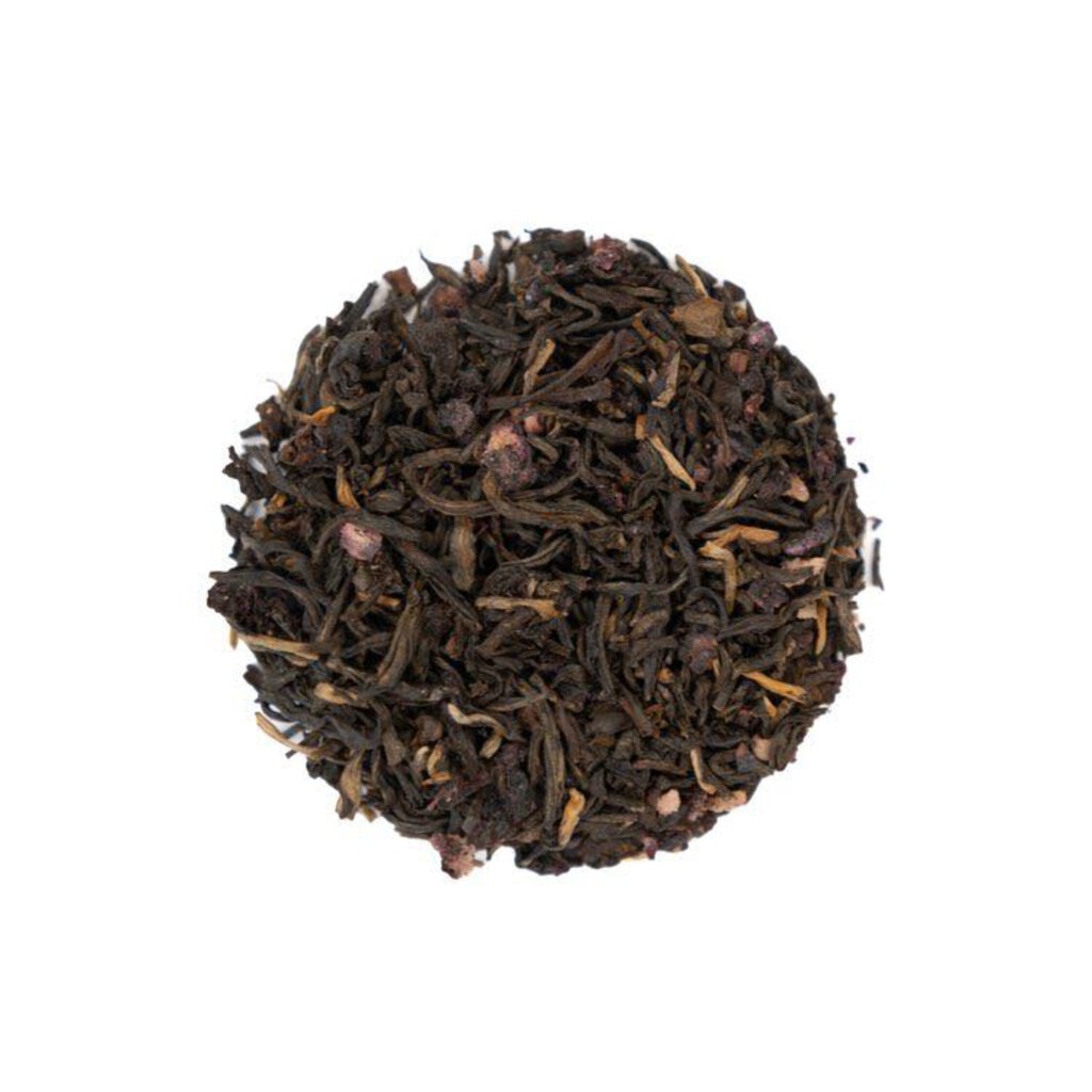 GREAT BAY BLUEBERRY IS A BLEND OF ORGANIC BLACK TEA AND DEHYDRATED BLUEBERRIES.