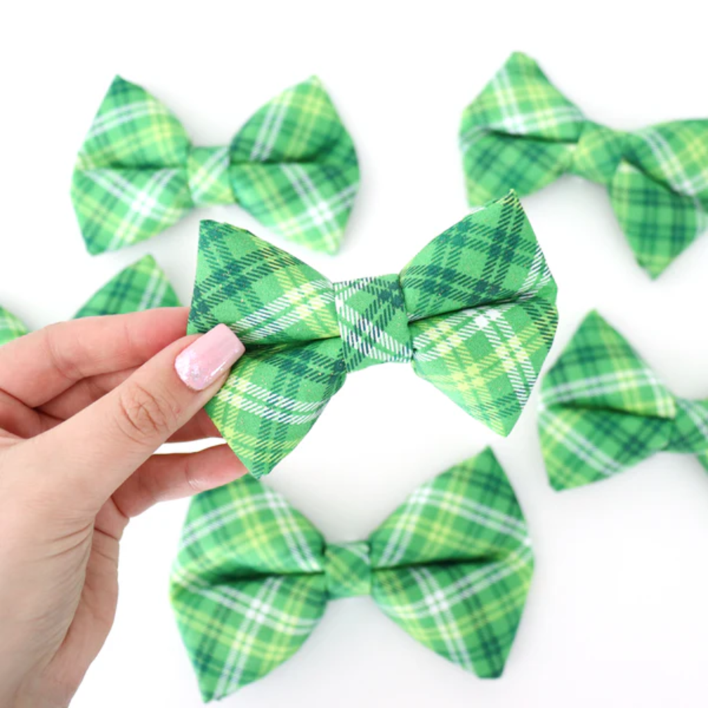 This handmade bow tie has an elastic backing to easily slide onto the pets collar. The elastic backing stretches to...