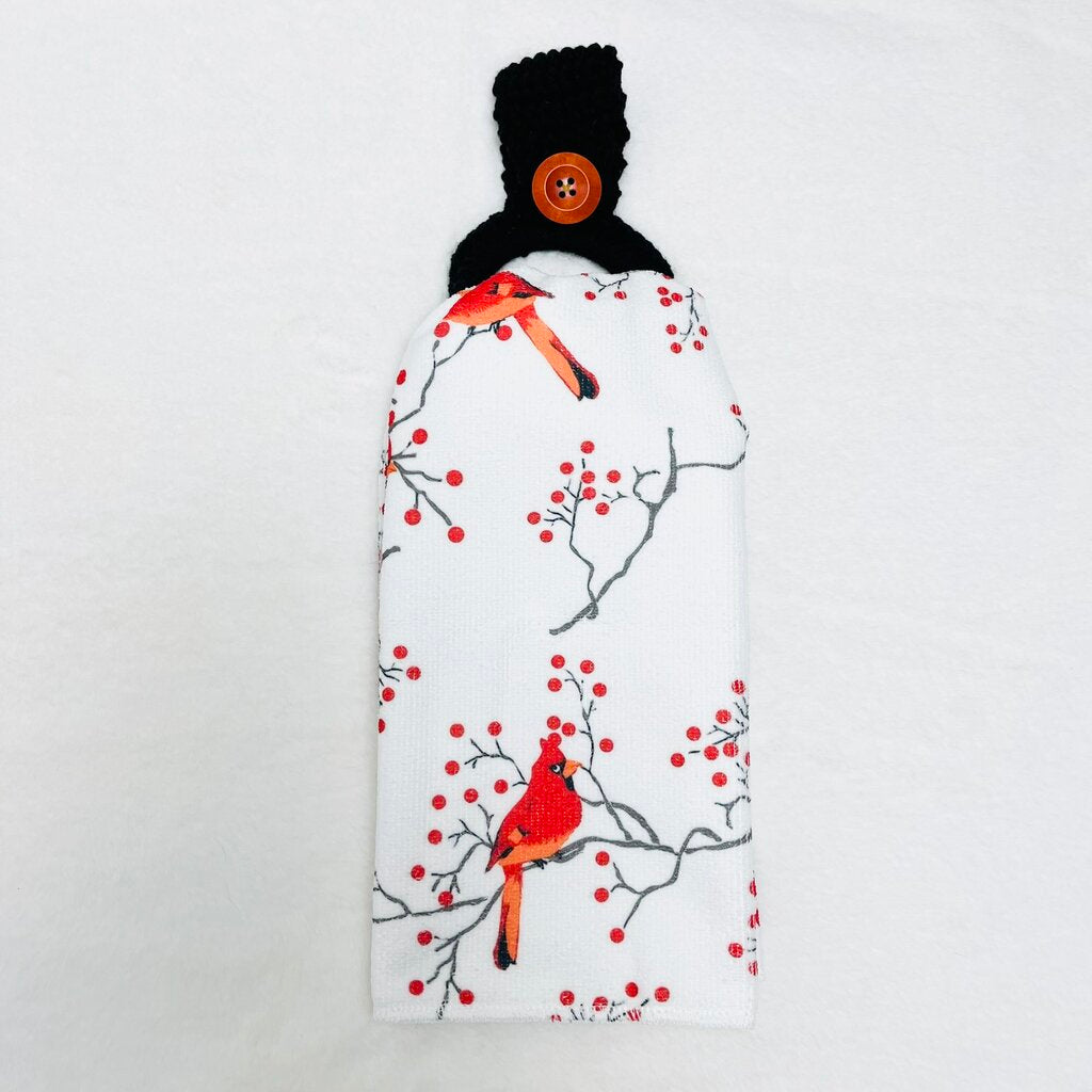 Hanging Towel Set - Cardinal with Red Berries