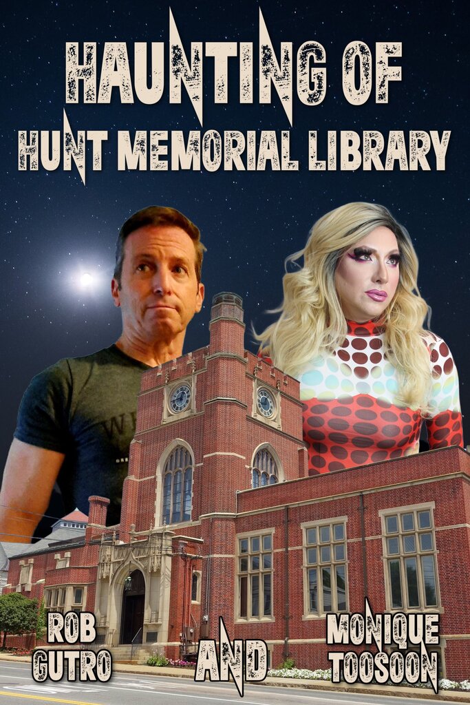 Haunting of Hunt Memorial Library Come Along and Investigate a Haunted Library and Encounter 3 Ghosts! After a book signing event in a former library, Medium Rob Gutro and Paranormal Drag Queen and Tech wizard, Monique Toosoon led a public paranormal investigation in the historic Hunt Memorial Library in Nashua, New Hampshire in search of paranormal activity. They were joined by other paranormal professionals and members of the public for this event. Their findings revealed three ghosts that were not associated with the building but chose the building as their residence. Together with other paranormal professionals and members of the public they uncovered a haunted secret love, illicit trysts, a ghostly teenage accident victim and haunted paintings. When reading this, you'll feel like you're on the paranormal investigation!