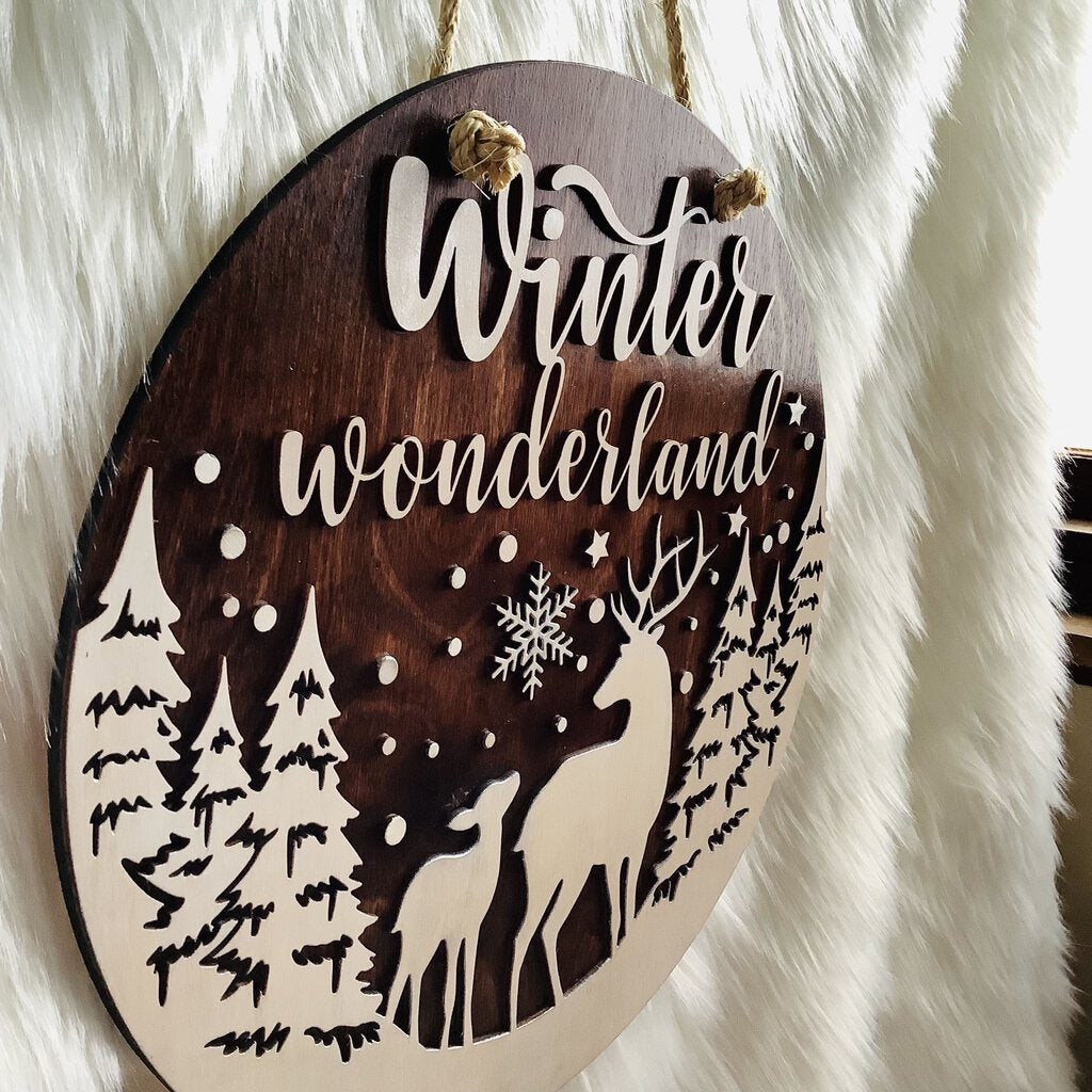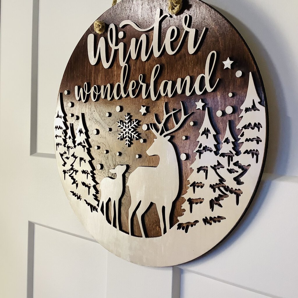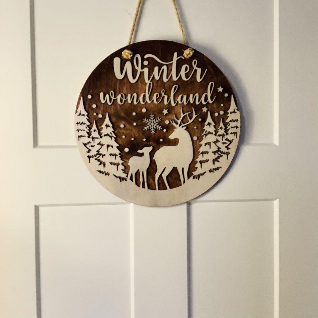 14" Moose mountain Welcome door/wall sign. Laser cut and hand painted. Base is 1/4" thick high quality Baltic Birch and...