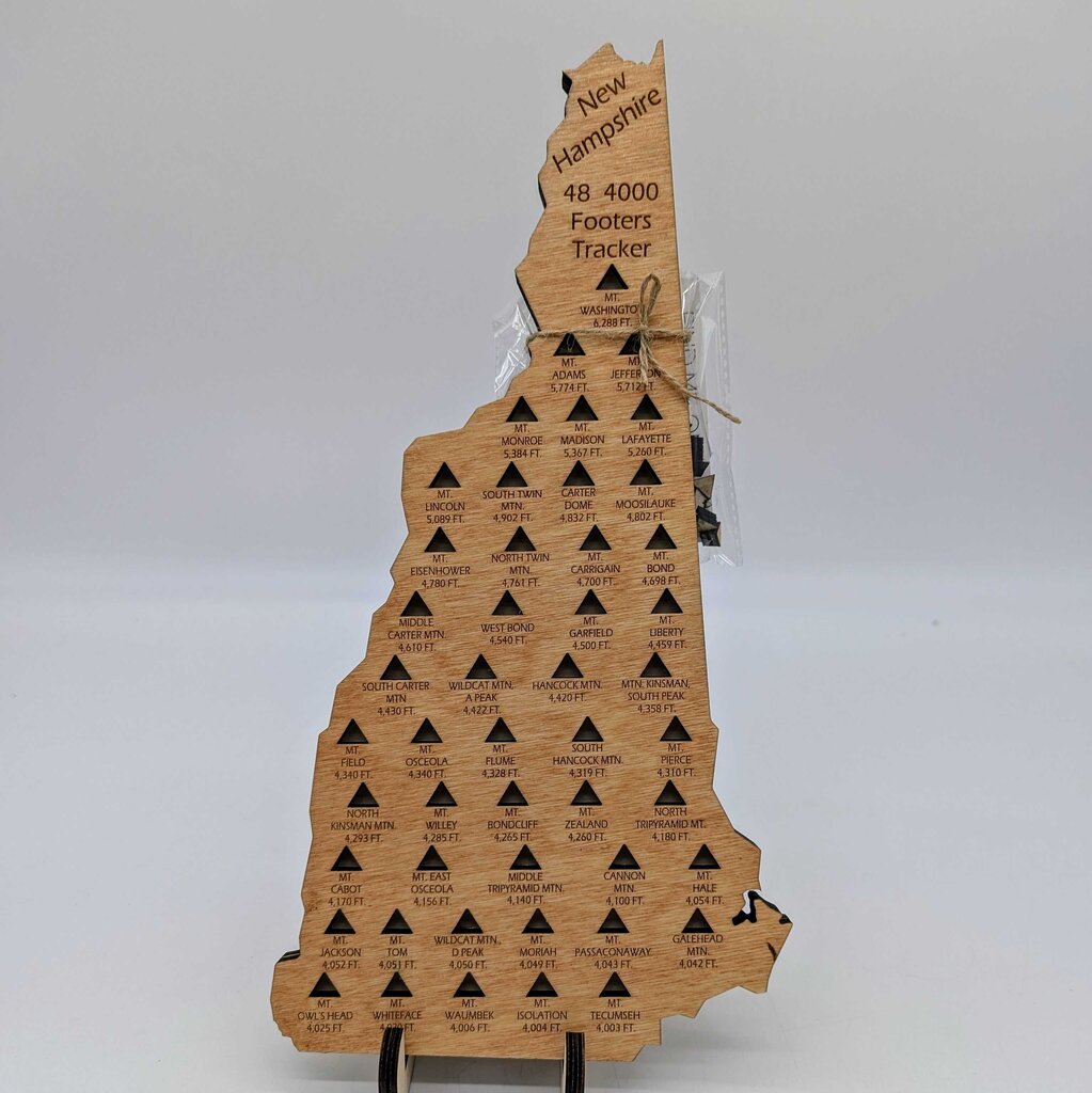 Laser cut 2 layers NH shape, 12.75"x6.7"x0.5". It includes : ⛰️48 small mount tokens with adhesive back. Track your accomplishments...