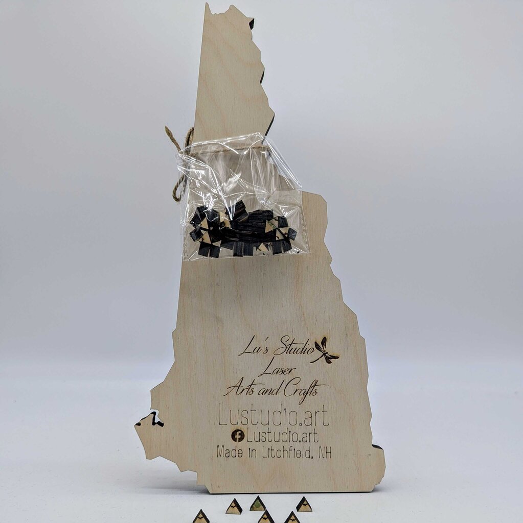 Laser cut 2 layers NH shape, 12.75"x6.7"x0.5". It includes : :mountain:48 small mount tokens with adhesive back. Track your accomplishments...
