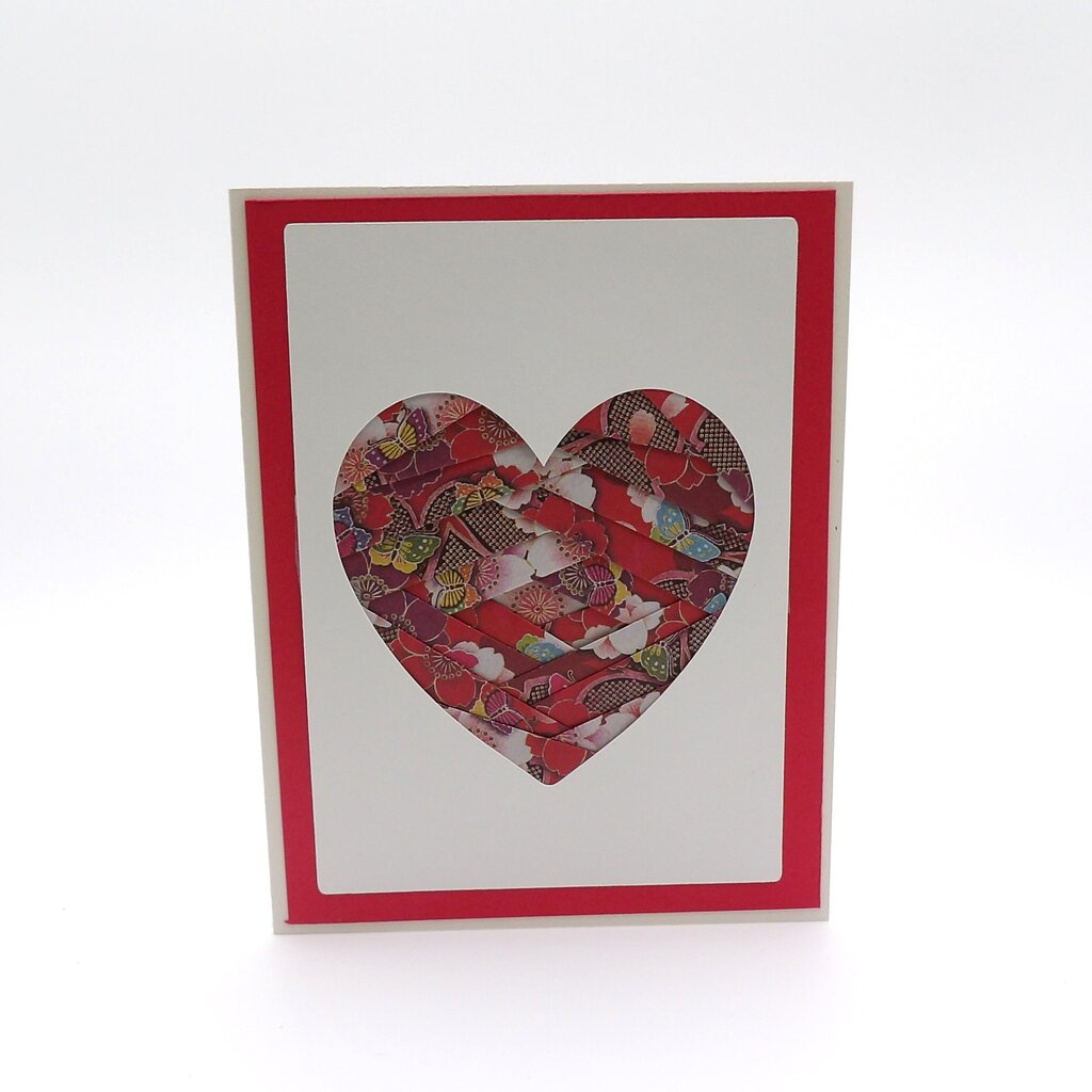 Red accent with red-purple butterfly floral origami papers. Blank inside for your personal message. Card base is made with FSC-certified, 100% recycled PCW,100lb cover cardstock. Includes a coordinating A2 envelope and a commercially compostable protective sleeve.