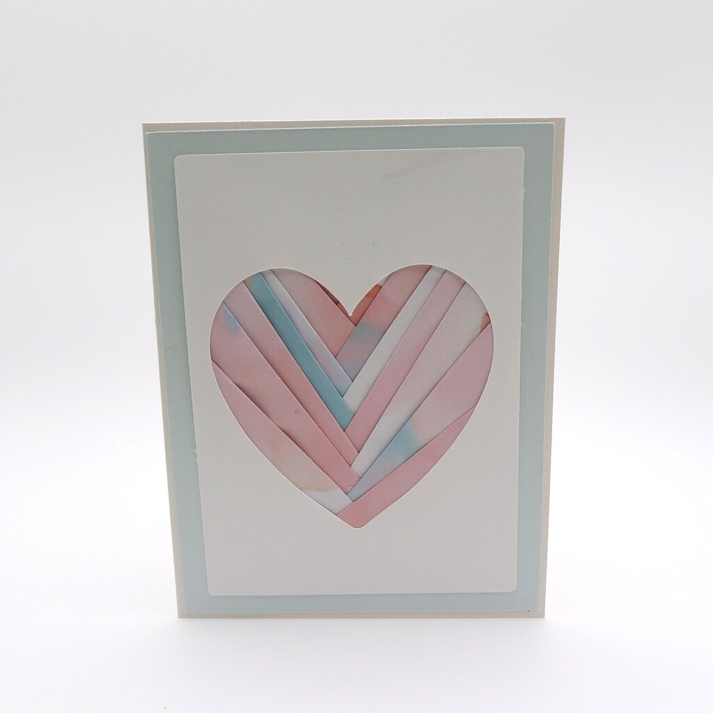 Seafoam accent with pale pink and blue origami papers. Blank inside for your personal message. Card base is made with FSC-certified, 100% recycled PCW,100lb cover cardstock. Includes a coordinating A2 envelope and a commercially compostable protective sleeve.