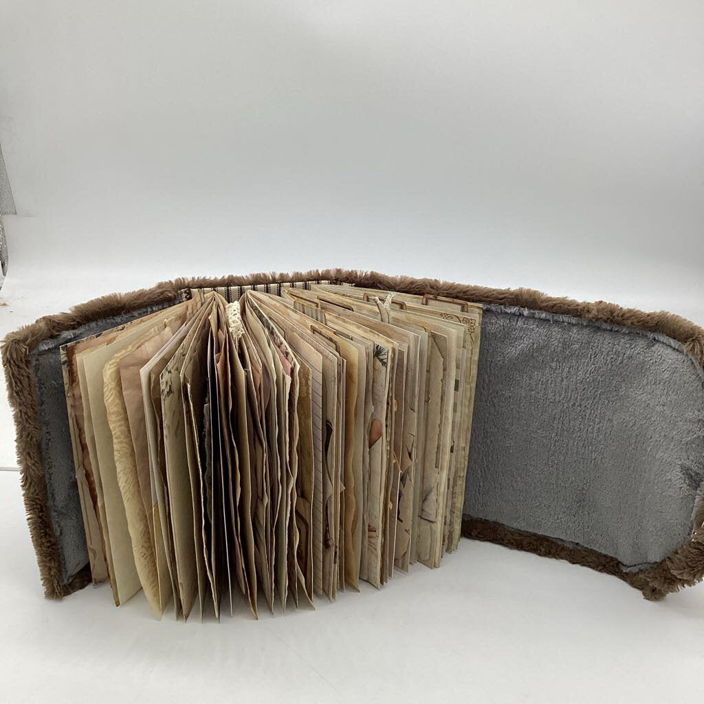 Plush covered handmade journal with 4" spine, measured 6"x9". 208 pages, including hand dyed paper and lots of embellishments, pockets,...